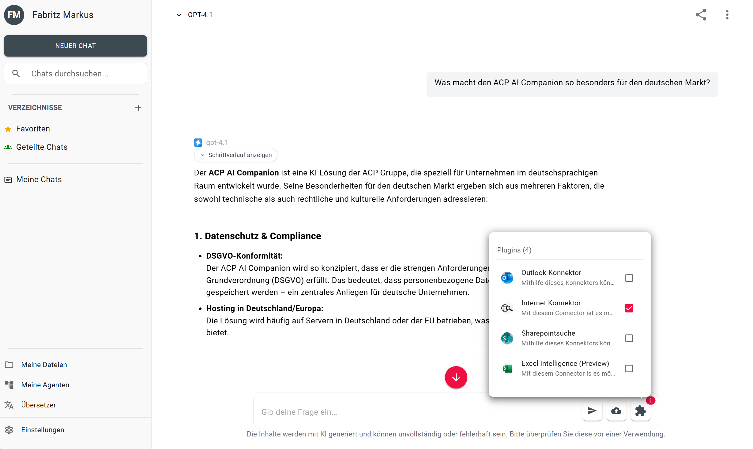 Der Chat wird damit zu einem vielseitigen Werkzeug für spontane Analysen, Zusammenfassungen und Informationsrecherchen im Arbeitsalltag. So entsteht ein vielseitiges KI-Arbeitswerkzeug, das sich exakt an die Anforderungen der Organisation anpasst.